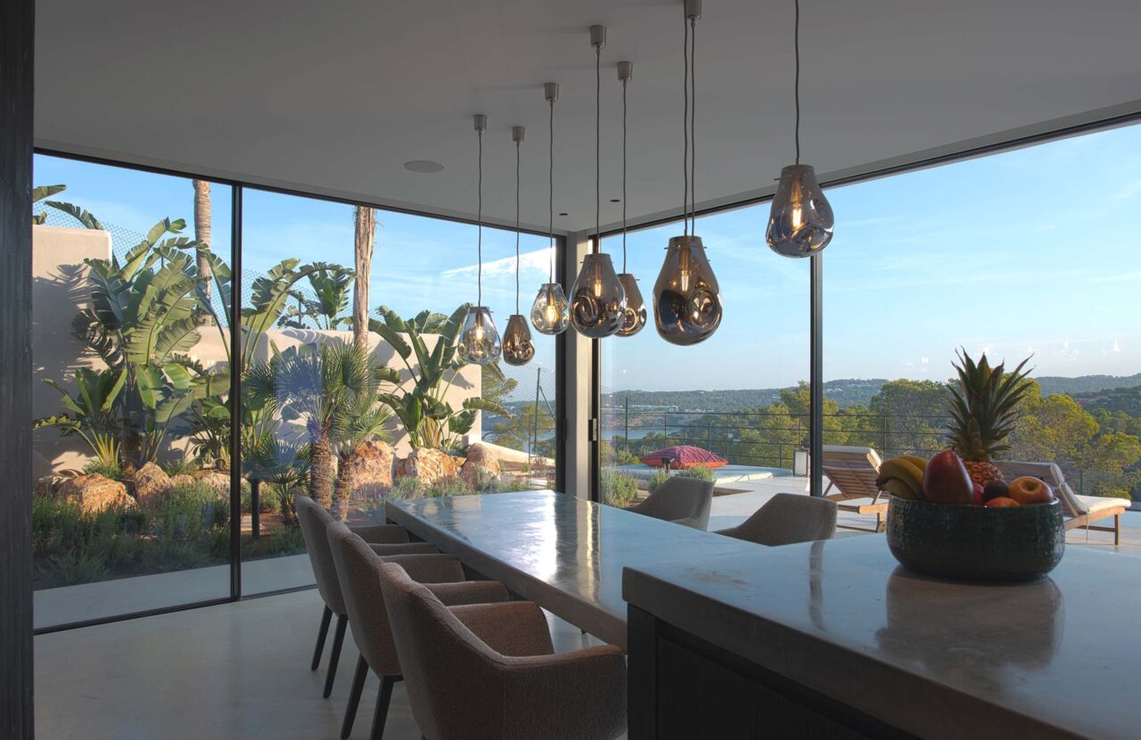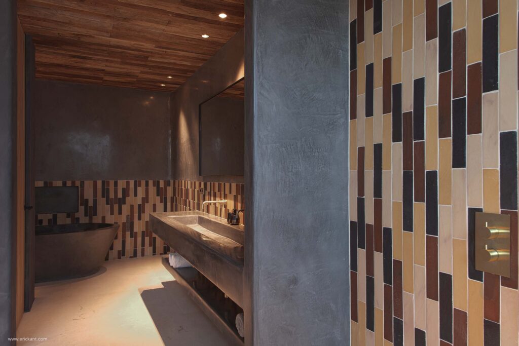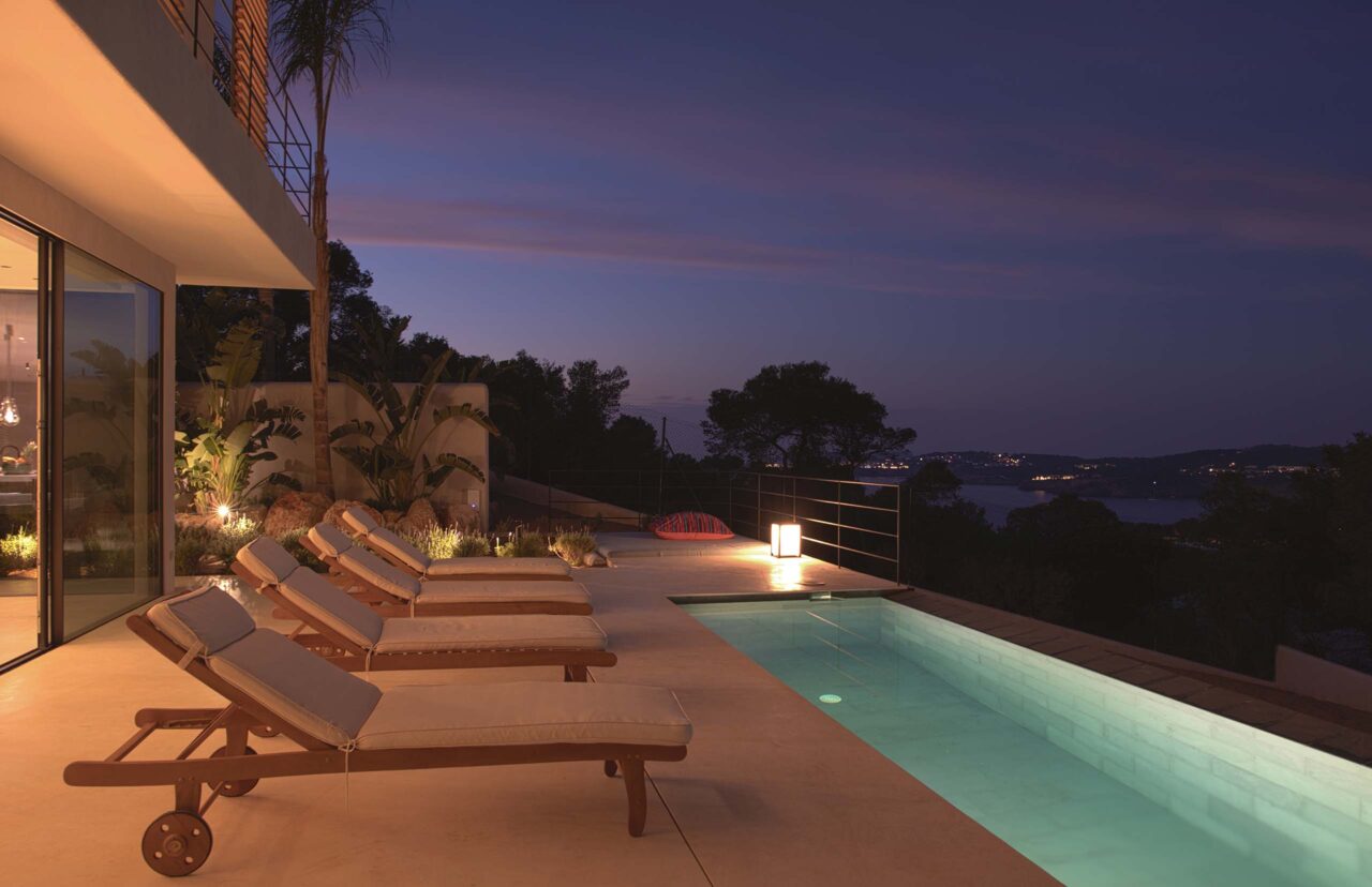 The choice of natural, tactile materials enhances the sense of calm and luxury: rough travertine, sand-colored plaster and oiled wood form the foundation. These are complemented by artisanal masonry, subtle bronze accents and the occasional eye-catching pop of color that adds warmth throughout. Every detail is designed with attention to texture, climate and everyday comfort.