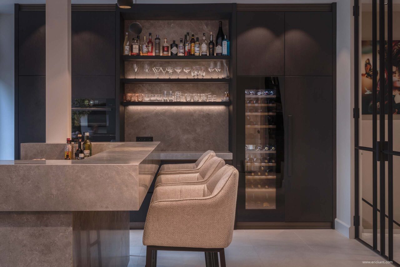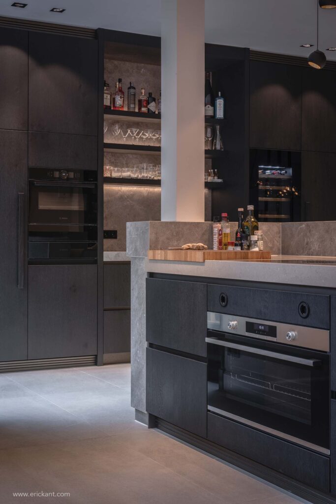 Light plays a central role in this apartment, where large windows and glass doors create a spacious and refined atmosphere. The generous kitchen is the beating heart of the home, featuring high-end finishes and a layout that is both practical and inviting. The stylish master suite on the lower level, complete with a dressing area, adds an extra touch of luxury to the living experience.