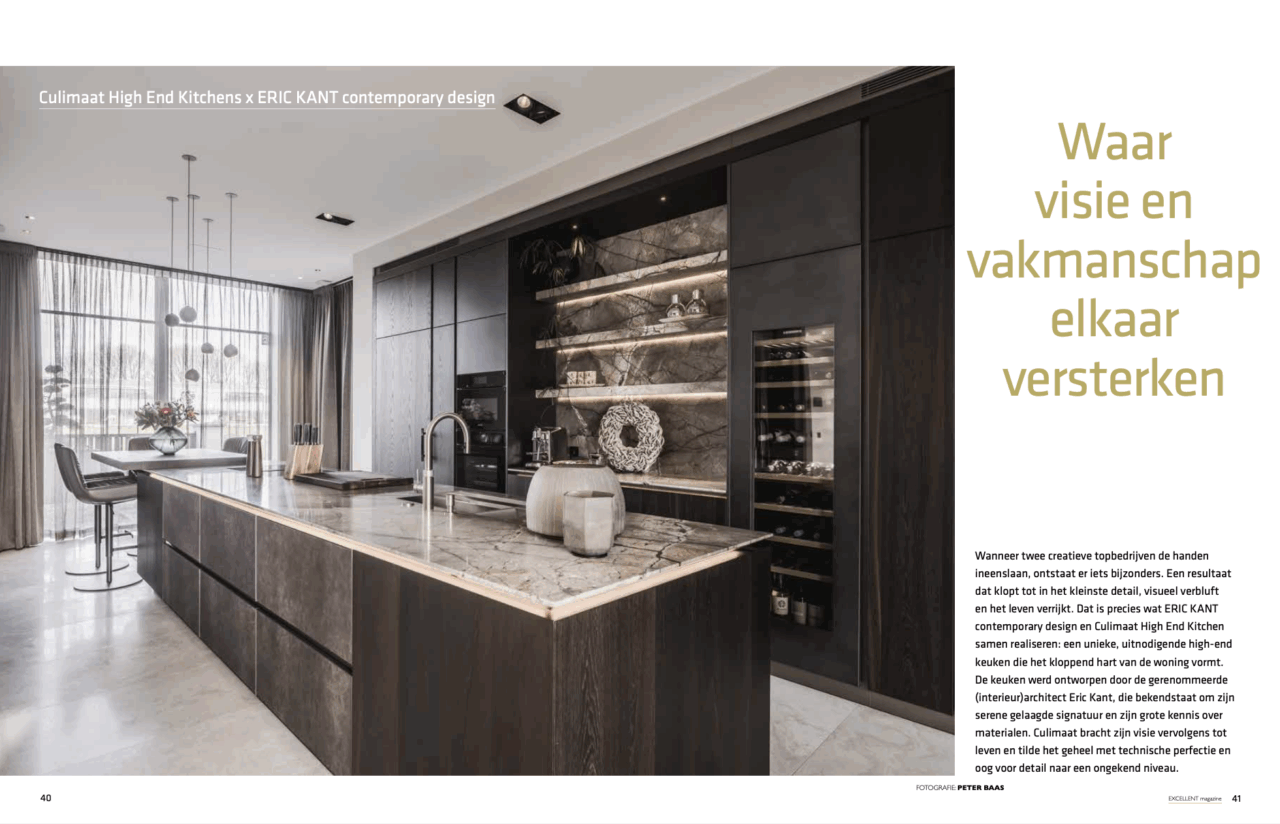 Wanneer wij onze creativiteit bundelen met gelijkgestemde partners, ontstaan projecten die écht bijzonder zijn. Zo ook in samenwerking met Culimaat High End Kitchen. Samen hebben we een keuken ontworpen die niet alleen schittert in uitstraling, maar ook het leven verrijkt en het kloppend hart van deze prachtige woning vormt.