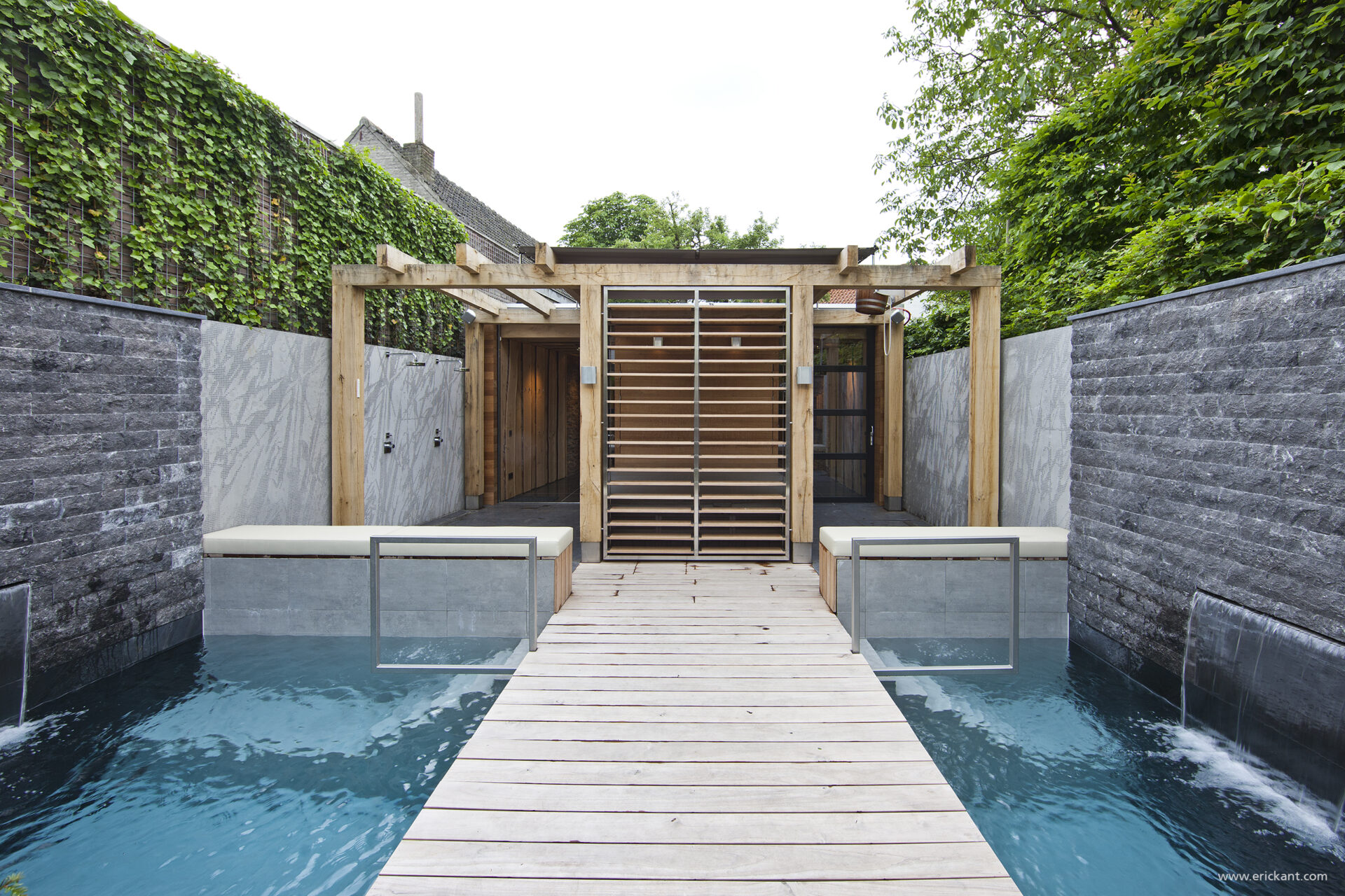 Het ontwerp is volledig afgestemd op ontspanning en beleving. De tuin is voorzien van een tuin dat de gehele breedte van de tuin bevat, stijlvolle loungeplekken, een sauna en hottub en een geïntegreerde buitenhaard – elementen die de sfeer van een luxe resort oproepen. Door gebruik te maken van natuurlijke hoogteverschillen en een slim lichtplan ontstaat een ruimtelijk gevoel en een visueel spel tussen binnen en buiten.