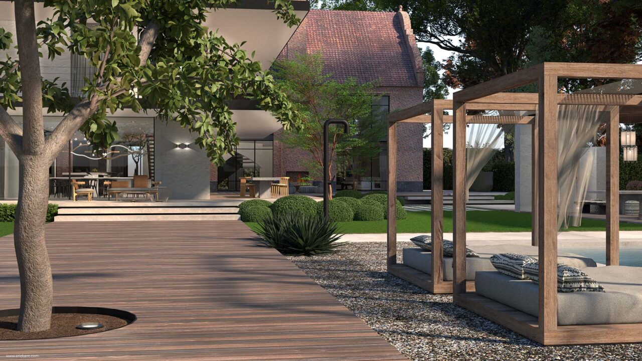 Binnen is minstens zo indrukwekkend. Dankzij de grote glaspartijen stroomt het daglicht rijkelijk naar binnen en vervaagt de grens tussen binnen en buiten. De inrichting speelt in op de natuurlijke omgeving met rustige kleuren die perfect aansluiten bij het omliggende groen. De moderne vleugel biedt een spannend contrast met het klassieke landhuis, wat zorgt voor een unieke sfeer van hedendaagse elegantie met respect voor de oorspronkelijke architectuur.