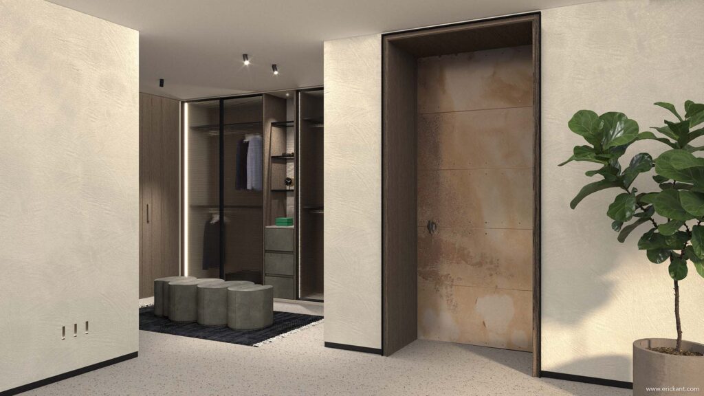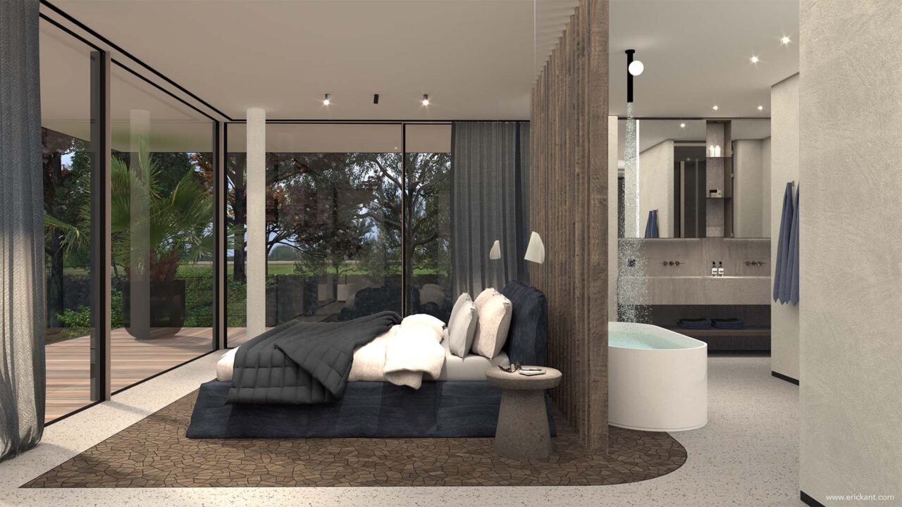 De basis van het interieur is licht en luchtig, maar krijgt diepte door het gebruik van donkere accenten en natuurlijke materialen zoals hout, steen en linnen. Deze zorgvuldig gekozen materialen versterken de verbinding met de natuur en maken van deze woning een plek waar je je direct thuis voelt. Elk element is erop gericht om comfort, stijl en het buitengevoel moeiteloos samen te brengen.