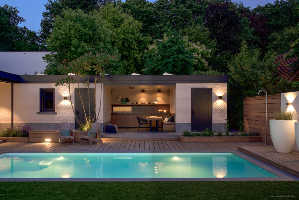 Wat deze villa bijzonder maakt, is de perfecte balans tussen elegantie en functionaliteit. De open woonruimtes zijn licht en luchtig, met zorgvuldig gekozen verlichting die zowel praktisch als decoratief is. Het interieur voelt naadloos verbonden met de buitenruimte: een prachtig, langgerekt zwembad loopt bijna als een verlengstuk van de woning, waardoor een indrukwekkend binnen-buitengevoel ontstaat. De aandacht voor details, zoals de combinatie van ronde, vrouwelijke elementen met stoere materialen, maakt dit huis uniek en tijdloos.
