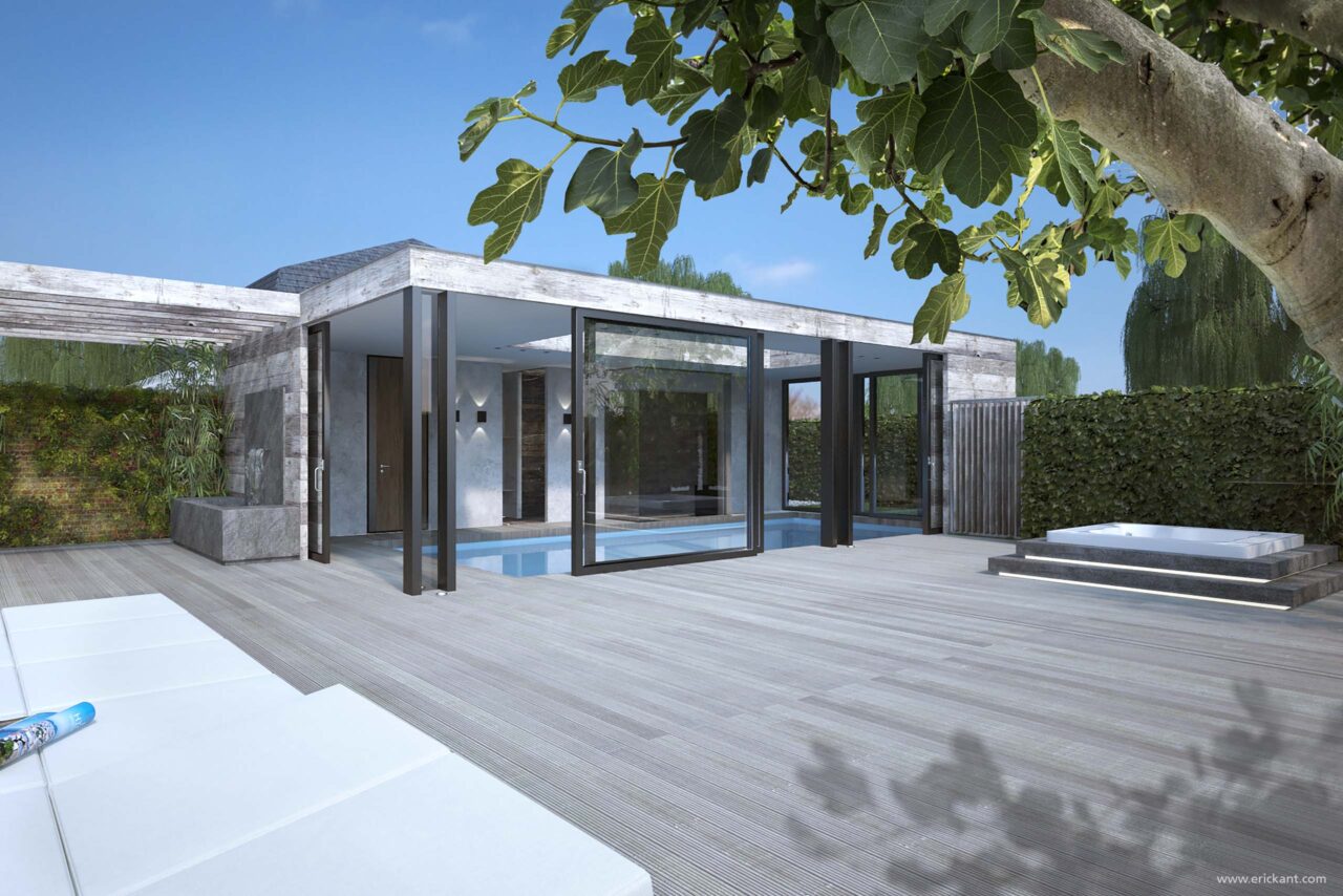 Bij dit exclusieve concept staat het materiaalgebruik garant voor tijdloze elegantie en duurzaamheid. Hoogwaardige, natuurlijke materialen worden gecombineerd met moderne, luxe afwerkingen om een warme maar verfijnde sfeer te creëren. De overkapping beschermt tegen weer en wind, waardoor je het zwembad en het poolhouse moeiteloos het hele jaar door kunt gebruiken. Het resultaat is een buitenruimte die niet alleen functioneel is, maar ook een statement maakt: een topklasse wellnessomgeving, ontworpen voor wie het allerbeste verlangt.